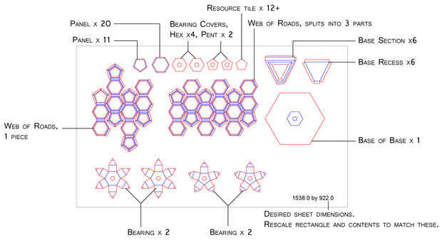 Si eres masoquista para recortar a mano este diseño, también puede utilizar estos archivos JPG o SVG. He incluido versiones simplificadas, que harán un Catanosphere idéntico, pero sin cualquier hendiduras para sujetar las fichas. Encontrará más fácil de cortar y montar, pero tendrás que sujete todas las fichas de juego con imanes.