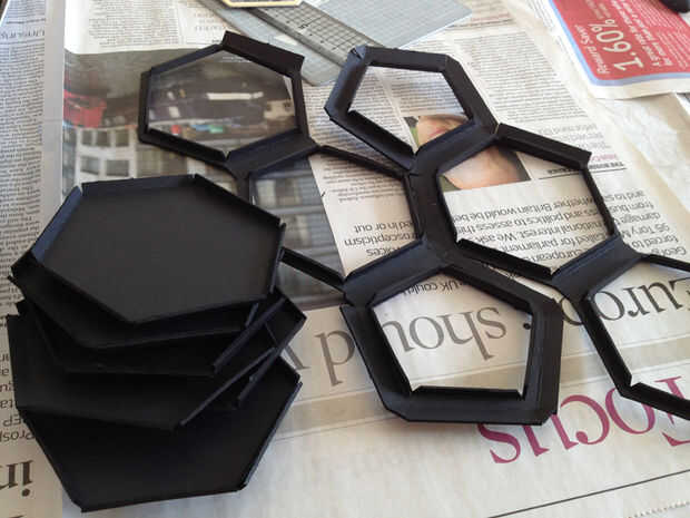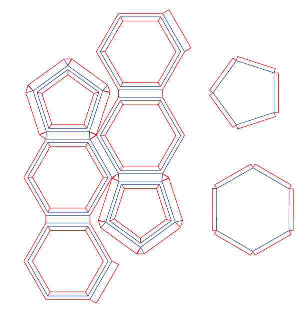 Usted también querrá encontrar y doblar todas las individuales pentágonos y hexágonos con las aletas rectangulares en los lados. Estos forman los huecos en las caras de su Catanosphere, donde van a quedar sus azulejos.