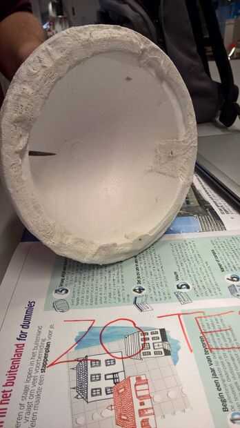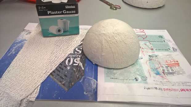Después de eso, haz el mundo de espuma de poliestireno y la gasa de yeso. Luego corte la longitud del globo. Cuidado, tienes que doblar debajo del borde para así que corte un poco más de firmeza.