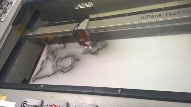 Cerca de la lasercutter. Usted puede encontrar el archivo en Trotec Jobcontrole a la derecha de la pantalla, sólo tienes que arrastrar el archivo al espacio de trabajo. Ahora pulse el botón de play y espere hasta que el trabajo es completado.