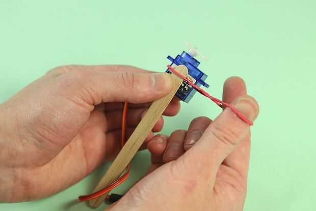 Coloque el brazo del Servo motor con banda elástica. Esto será empujado en el suelo de la planta.