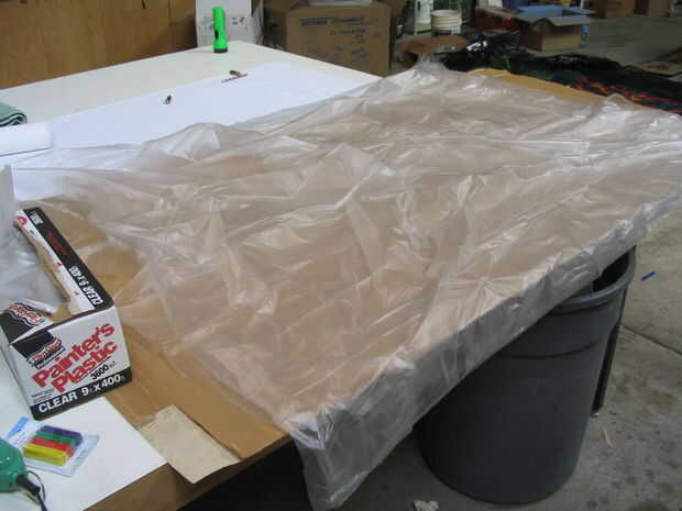 Tire aproximadamente 6 pies de plástico del pintor y cortarla formando una hoja de 9 x 6 pies. Es importante que el plástico que es 1/2 de la milipulgada (12 micras) o más fino. Plástico más grueso es demasiado pesado para volar.