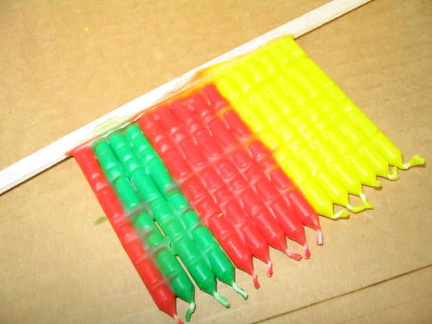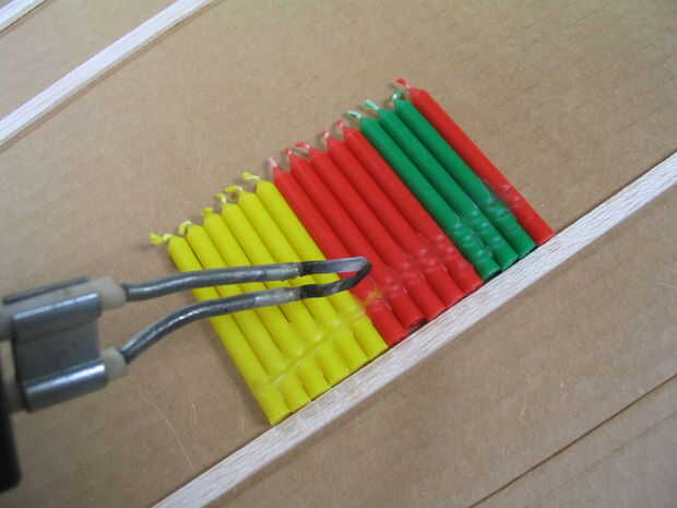Una vez que las velas se unen juntos, les derrite en el medio de una pieza de madera de balsa 3/16 x 1/8 x 36 pulgadas.