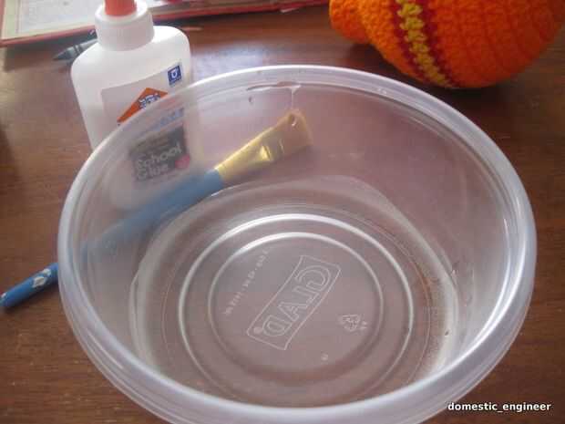 Yo lo hice probablemente aproximadamente 3 partes de agua y 1 parte de pegamento. La próxima vez sería hacerla mitad y mitad.