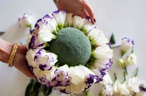 Inserte cada flor en el globo hasta que el globo está completamente cubierto de flores.