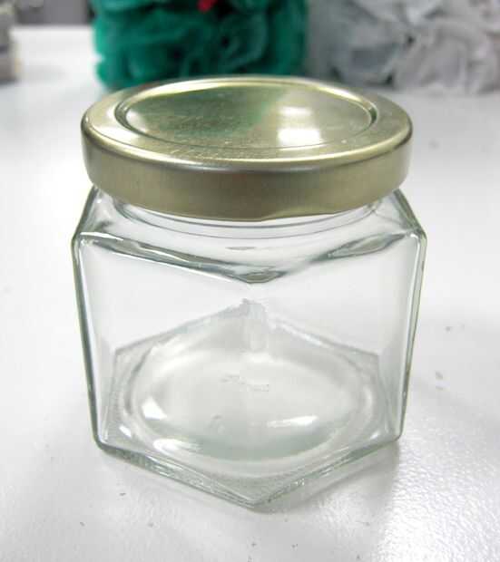 compré este tarro 6 cara de botella de la especialidad. Los recipientes mejores para este proyecto son frascos estuvoo corto generalmente llenados de mermelada o algún producto gourmet. Una ronda uno funcionaría bien. Buscar en la nevera, estoy seguro que hay uno ahí!