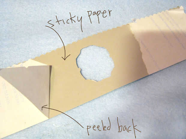 Retire un poco de la etiqueta engomada de papel y comience a envolver la escena de la jarra a partir del frente con el troquel corte ventana y entonces suavemente Retire el resto del papel mientras que adhiere a la jarra.