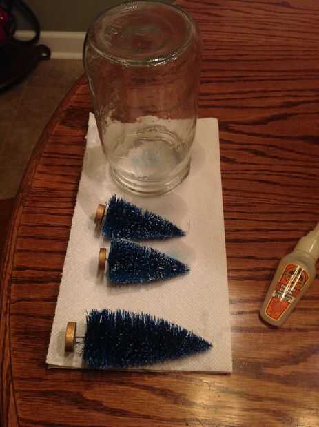 en las fiestas y hacer tus propios globos de nieve vintage-tarro de masón!  Utilice nuestro globo de nieve DIY Kit, que incluye un tarro de masón azul de edición limitada, cuatro árboles miniatura y un paquete de ornamento con copos.Paso 1: Te necesi