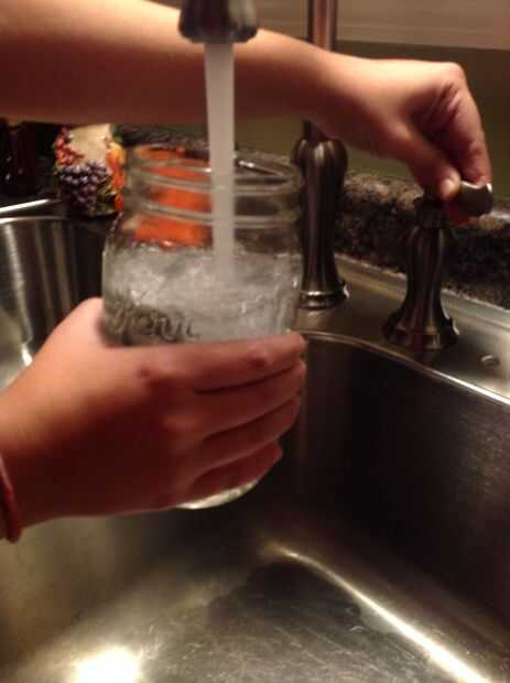 Llene la jarra con agua hasta que esté aproximadamente una pulgada desde la parte superior. Luego, agregue 2 cucharadas de glicerina. Por último, mezcle glicerina para mezcla uniformemente a través del agua.