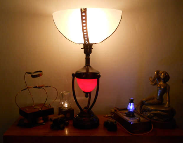 con algunas piezas antiguas, un interruptor más dévil y tubo negro hice esta lámpara. El atenuador ha sido presentada e insertada en la válvula de agua para actuar como un interruptor más dévil. Conexión de la lámpara que pulirse para que quepa dentr