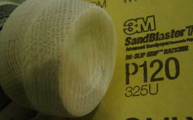 Arena la madera en pasos. Como en la imagen, utilizan los siguientes granos 80, 120, 220 y finalmente una capa de cera de las abejas 1/3, aceite de nuez de 1/3 y 1/3 aceite de mineral. Esto deja un acabado mate, pero trae detalles en la madera.