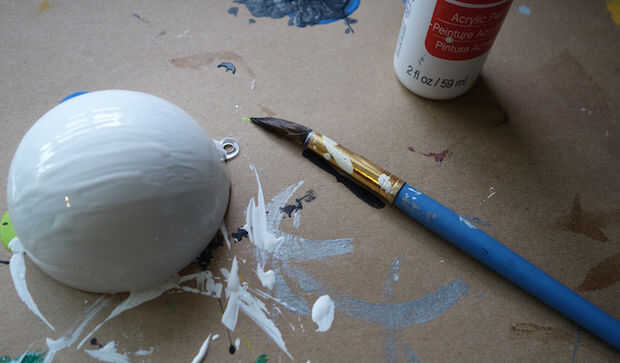 Comienza cubriendo la cosa de adorno en la cartilla, luego cuando seca la pintura blanca.