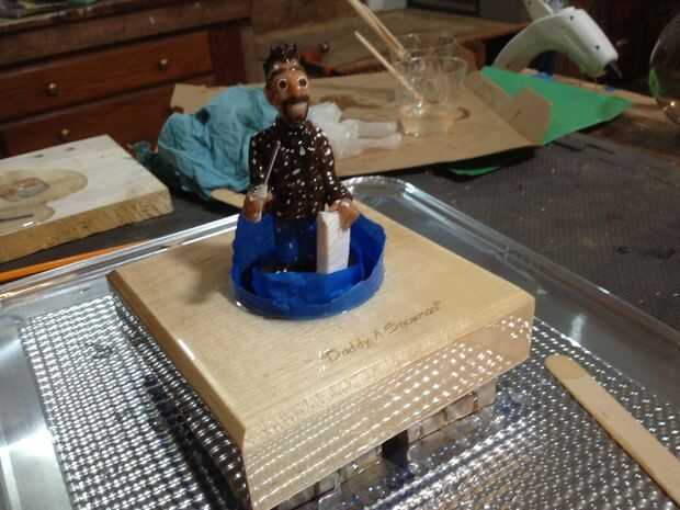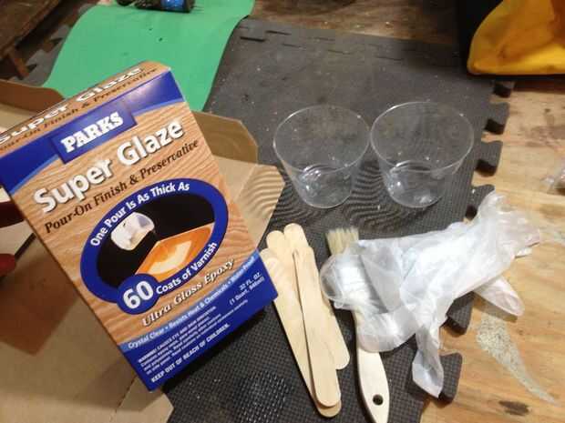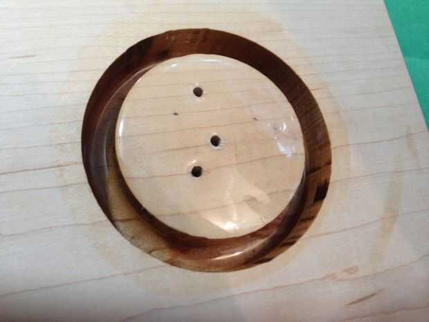 Había probado el Super esmalte otras piezas de Sculpey y madera y estaba contento con los resultados, pero también aprendí que tengo que tener cuidado de las gotas, y sería bueno añadir algún tipo de "mango" a la pieza que yo podía mantener sin realmente tocar la madera mientras que cepilló el epoxi en los lados.