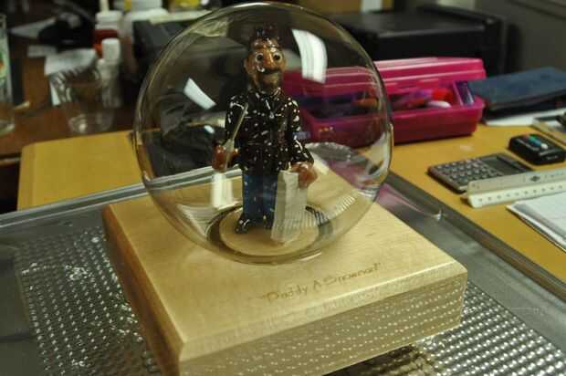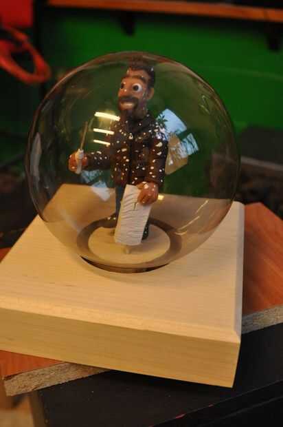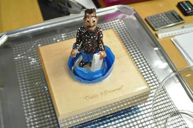 Los resultados con un acabado hermoso, claro, duro y brillante sobre la madera (que protege el top laser-grabado así) y un acabado durable y a prueba de agua en la figura. La figura fue también muy sólidamente conectada a la base.