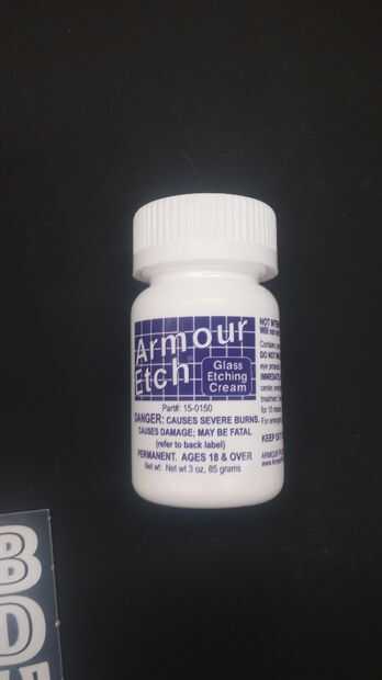 Armour Etch (se puede encontrar en una tienda de artesanía como la de Michael y Hobby Lobby)