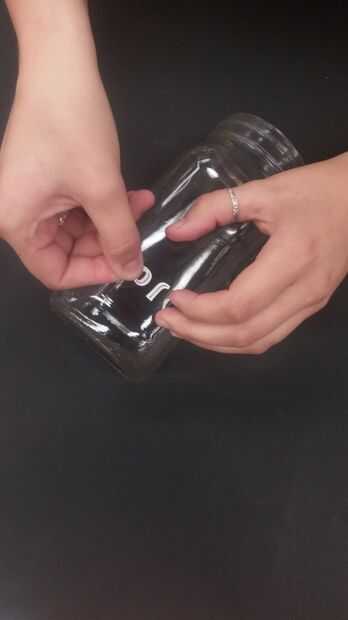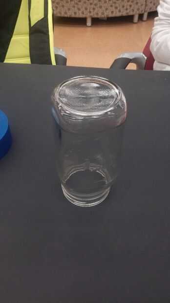 ● Gire el frasco boca abajo (la abertura de la jarra hacia la mesa)