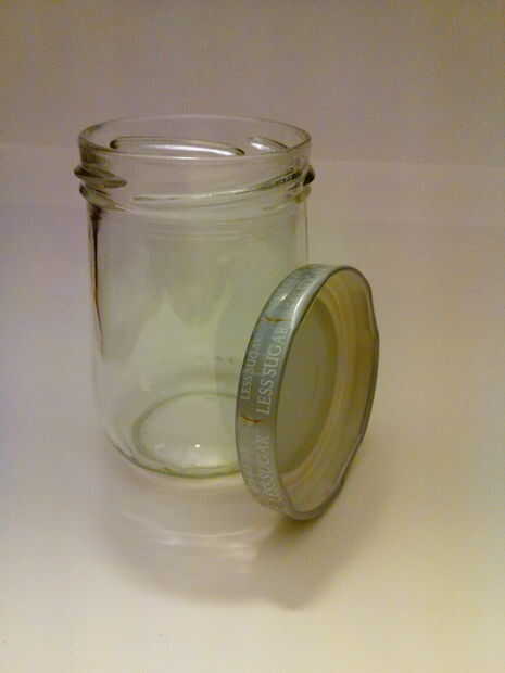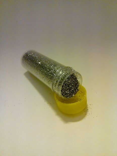 El Abalorio de su elección para la tapa del pegamento. Hacer este paso primero para permitir que seque mientras hago los pasos restantes.Paso 1: Llene el fondo de su vaso con el color deseado de brillo.Paso 2: Llene su frasco con agua.Paso 3: Llene e