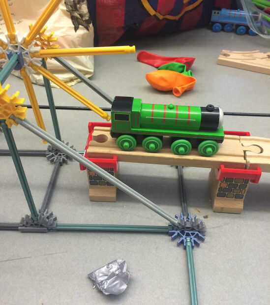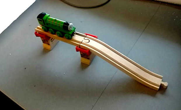 Sobre Brio tren de (madera) pistas se encuentra Henry, (de Thomas el motor del tanque) listo para la acción. Una de las ruedas giratorias swing en él y le causa a rodar por la pista para activar la etapa final del procedimiento.