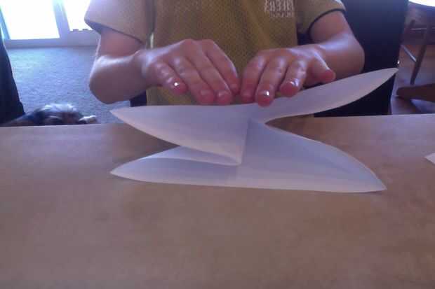 Aplasta el papel para que el resultado es como la de la foto. Una manera fácil de hacer esto es mirar el pliegue horizontal y lo de la curva en el centro, dando por resultado una bomba de agua base de. (Esto podría no tener sentido, ya que tengo un tiempo difícil explicarla.)