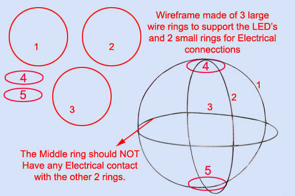 Amarrar los 2 anillos Vertical con la Horizontal del anillo con los alambres finos como se muestra en la ilustración. Tenga cuidado de ver que no hay ninguna conexión eléctrica entre la Vertical y Horizontal los anillos.