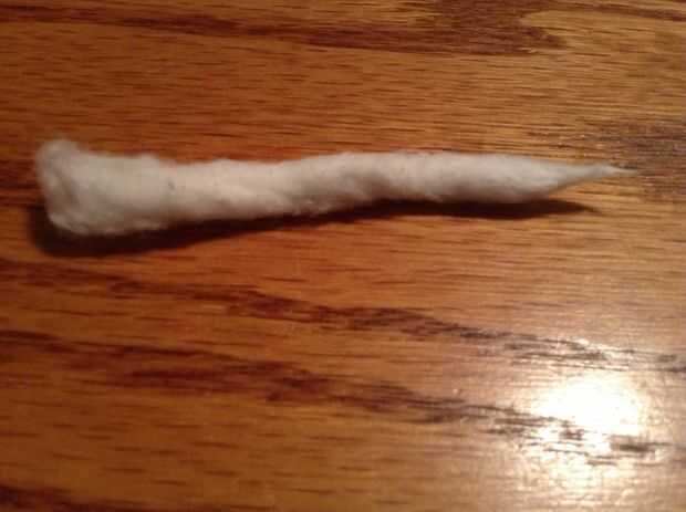 Rip off un pedazo largo de la tira de algodón y enrolle en forma de cono. Pegamento a la base del globo ocular, haciendo que el tallo.