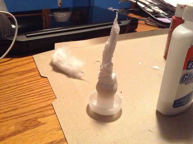 Ahora pintura pegamento en el tallo. Esto lo ayudará a mantener su forma y agregar estabilidad. Puedes ver que encontré una pieza plástica que puedo configurar el ojo en para secar.