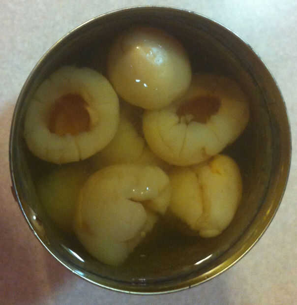 1. Drenar el lichis (conserve el jugo si quieres un Martini de leeche: 3 partes de gin, 2 partes almíbar de lychee).