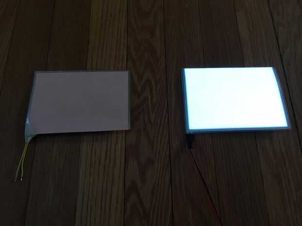 1. Dos A6 tamaño electroluminiscente (EL) paneles. Nota: Comprar ambos sin inversores. Que se va comprar un inversor integrado y caja de batería, que se iluminará dos paneles. (ebay, Amazon) $20-25