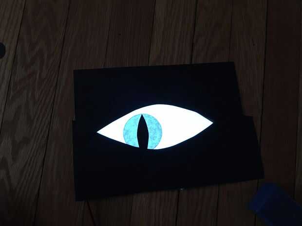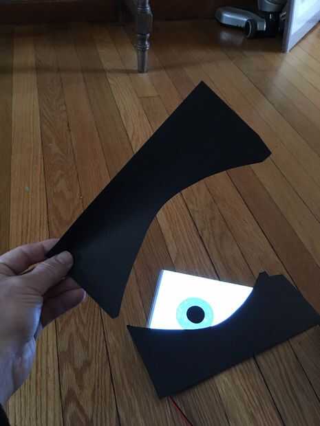 Una vez que te gusta la forma de los ojos, con cinta las piezas en su lugar en relación con ellos para conservar la forma. Use los recortes de papel como plantilla para hacer tus ojos de materiales duraderos.