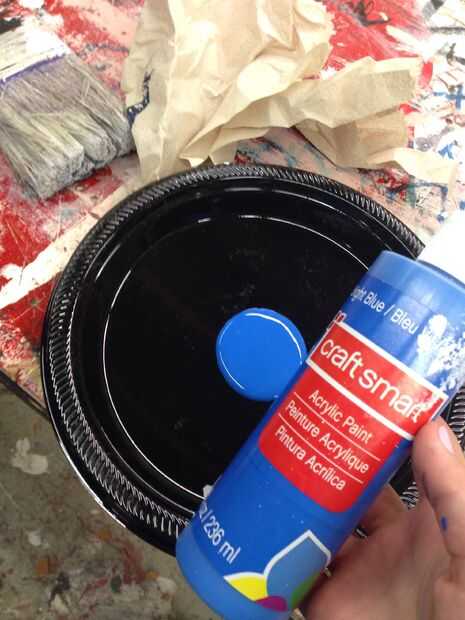 Tomar la pintura acrílica azul oscurezca y ponerla en la placa para el iris.