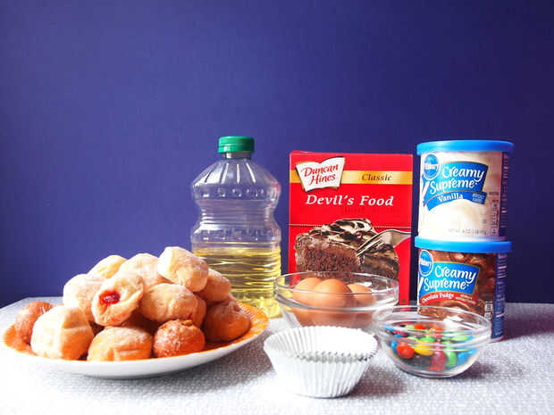 Me había sobrado de mezcla para pastel en el extremo de hacer los cupcakes de globo ocular y unos 10 cupcakes mini; puede tome en cuenta y tienen las envolturas de cupcake mini y un práctico mini bollitos.