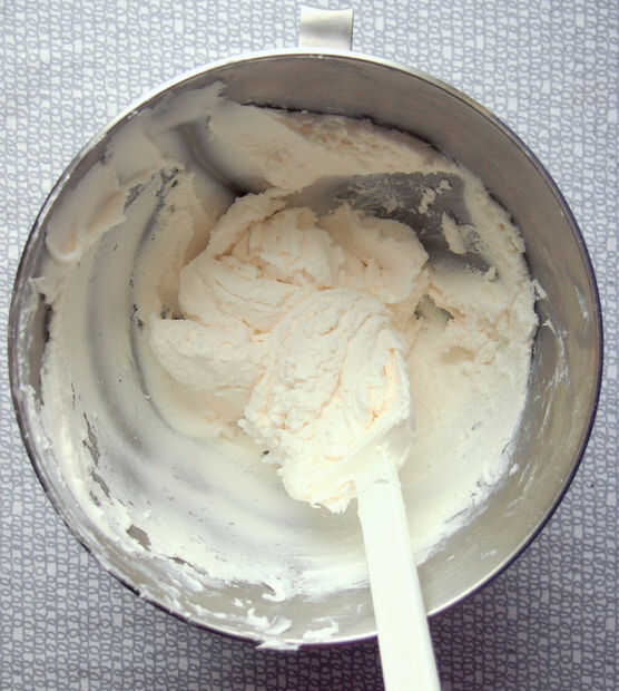 Mezclar la mitad del envase del blanco glaseado con 1,5 tazas de azúcar impalpable.