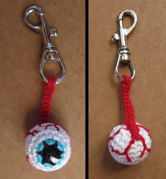 esto es una diversión, un proyecto fácil de tejer con el calcetero de Knifty tejer telares. Punto ojos de diferentes tamaños hacen grandes decoraciones de Halloween. Hacer un conjunto de ojos de diferente color, para que coincida con todos los miembr