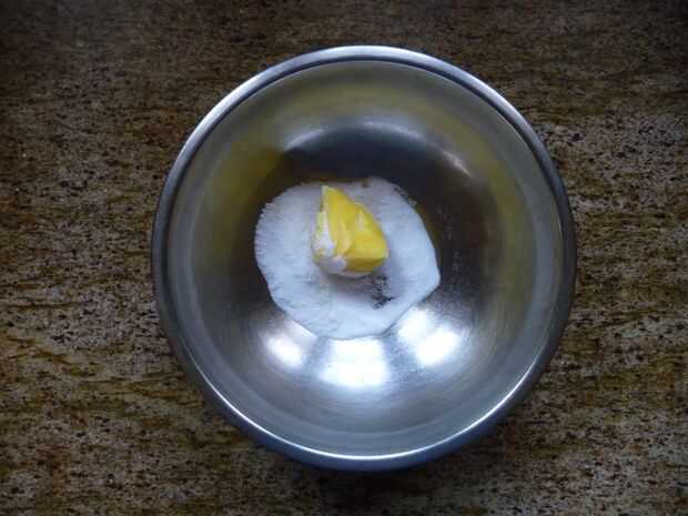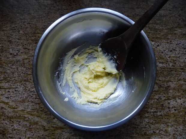 - Crema de la mantequilla y el azúcar hasta combinar bien. Añadir la harina y mezcle para formar una masa suave.