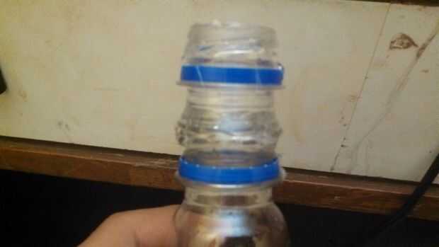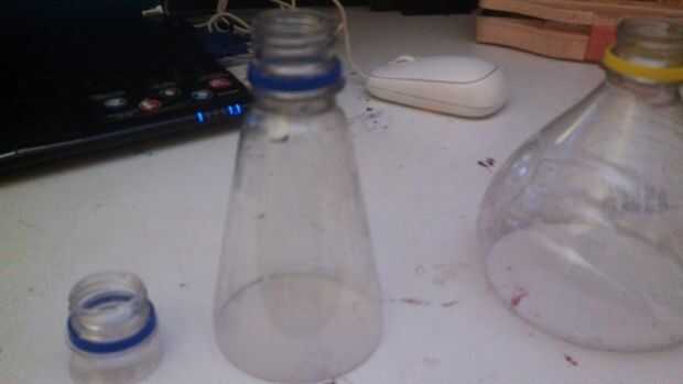 Ahora toma la primera pieza de la botella y con la ayuda de la pistola encoladora pega encima de la segunda pieza como se muestra en la imagen.