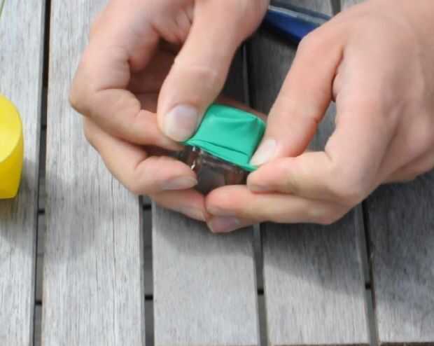Rodar el balón en la glas y probar colocando la punta de su globo en la parte inferior de su glas, también intente estirar la goma por lo que no obtendrá ningún arrugas a los lados. Tenga cuidado para no destruir la goma cuando usted tire/roll lo.