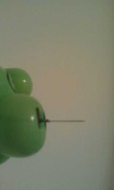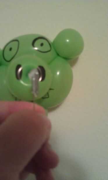 Tomé el cerdo y adjunto un pequeño trozo de cinta a la parte posterior de la misma y había pegada en la pared. La tomé de una aguja y envuelve cinta alrededor de los ojos para que no se hacer estallar el globo y colocó suavemente en el hocico. A continuación, puede disparar su pájaro azul en él o simplemente pop contra la aguja. Esto fue difícil de capturar en cámara, mina no captó la acción pero tengo un video sobre cómo disparar el balón. Usted puede hacer muchos de estos o solo utilizar globos redondeos llano y dispararles en el cerdo.