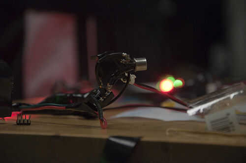 La toma de foto (no el pic para permitir más fácil programación) de la soldadura. Dejar unos 6 pulgadas cables entre el LED y el picaxe. Suelde el picaxe, el sensor y la batería juntos.