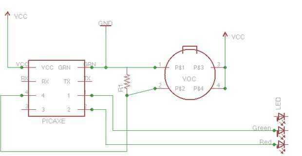 2 - picaxe pin 4, con una resistencia de 10K a tierra