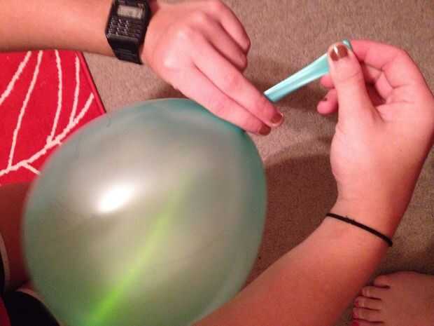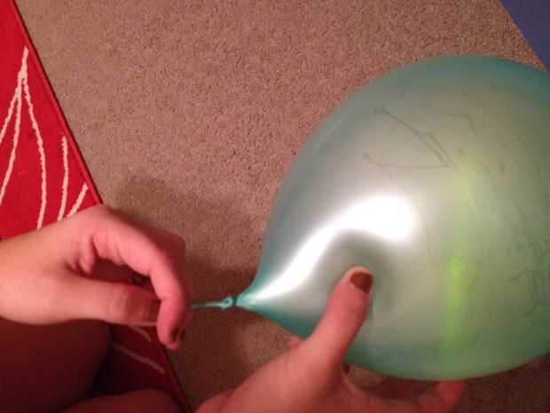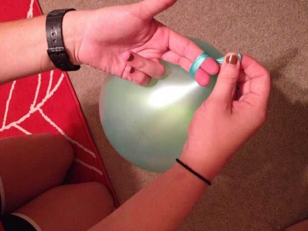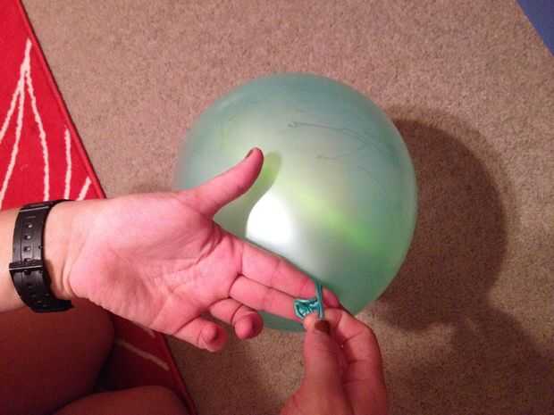Después de la cantidad de aire que desea que tenga el balón, tendrá que atar la abertura del globo para que no escape el aire. Simplemente Ate el extremo de la abertura en un nudo y eres bueno para ir!