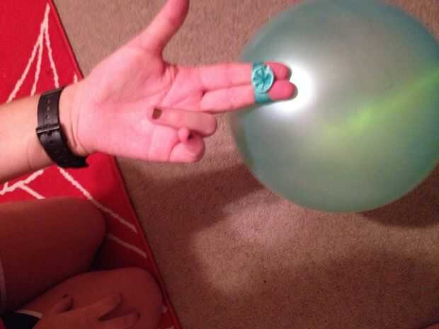 -girar el material del globo alrededor de los dedos para que las uñas están ahora mirando hacia abajo