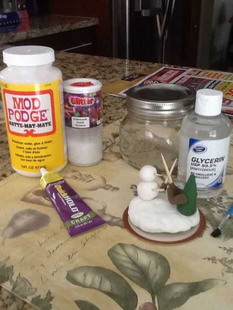 Voy a utilizar la arcilla de polímero y hacer mi propio muñeco de nieve para este proyecto, así como un árbol para un escenario extra. Esta pequeña escena fue cocido al horno a 275 grados por 30 minutos en un pedazo de papel de aluminio arrugado. Asegúrese de que cuando se forma la hoja, tiene que ser tan plano como sea posible en la parte inferior por lo que puede mentir sobre su tapadera. Asegúrese de que toda la base no es demasiado grande (no sobresalga de la parte rodeada de la jarra).