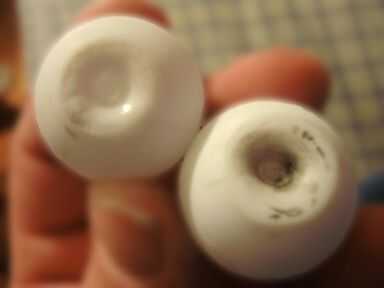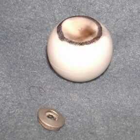 -Una vez tuve el plástico flexible trataron una serie de elementos para dar la forma "correcta" a la zona del iris. La primera imagen usé una arandela convexa con una guarnición de goma al revés para presionar el plástico flexible hasta que haya enfriado. El segundo que utiliza el extremo de un palo de fósforo de madera y luego una moneda pequeña para aplanar el área circundante. Preferí la aparición de estos y hacer un paso más adelante mucho más fácil.