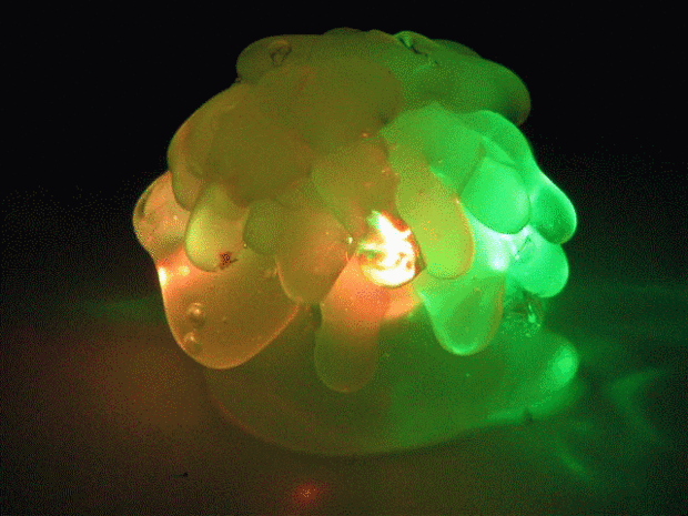 Resplandor Globs (a.k.a.The estado de ánimo global) sentarse cerca de su computadora y a través de patrones de color ciclo sin fin. (Las animaciones muestran un cambio repentino: en realidad el cambio es gradual). Se podría hacer un par para alegrar el espacio de trabajo o dar como regalos. El recurso es tal que es apreciados por cualquier persona - no sólo geeks de ordenador. Globos resplandor utilizan muy pocas piezas y se pueden hacer en un par de horas, aunque mucho de ese tiempo está esperando pegamento caliente se enfríe.