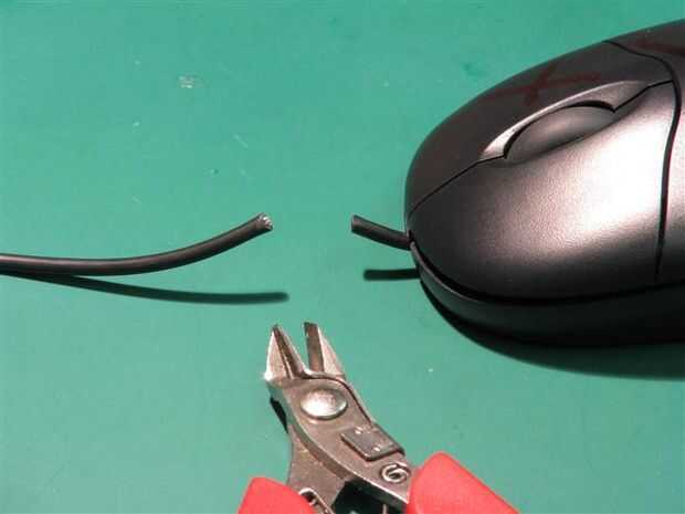 Corte el cable USB cerca del ratón para que te queda el plomo largo y el conector del extremo del equipo.