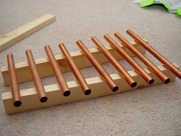 Si estás usando nueve tubos como si fuera y las notas de D7 C6, puede cortar dos largos de 420mm (16,5") de la tabla de 3/4" x 2"(3/4" ni 2" es muy crítico).