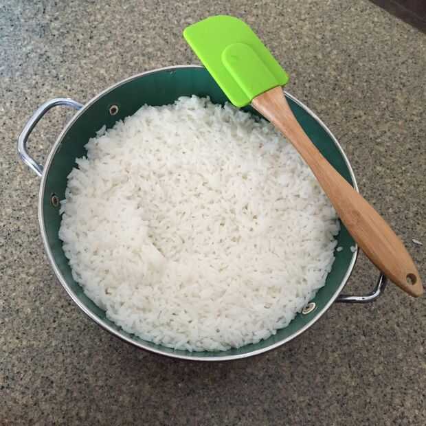 Arroz: Cocinar el arroz bien en su manera preferida de arroz cocción (hirviendo la olla con agua, olla arrocera, etc..)