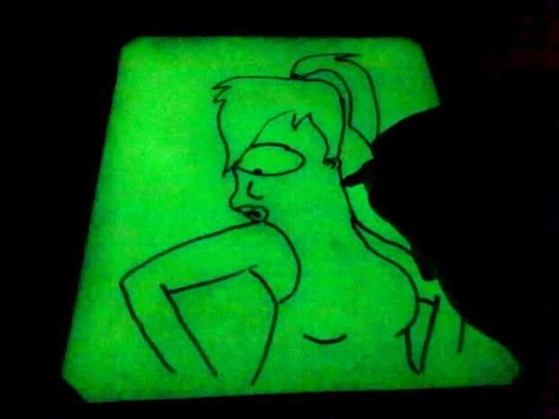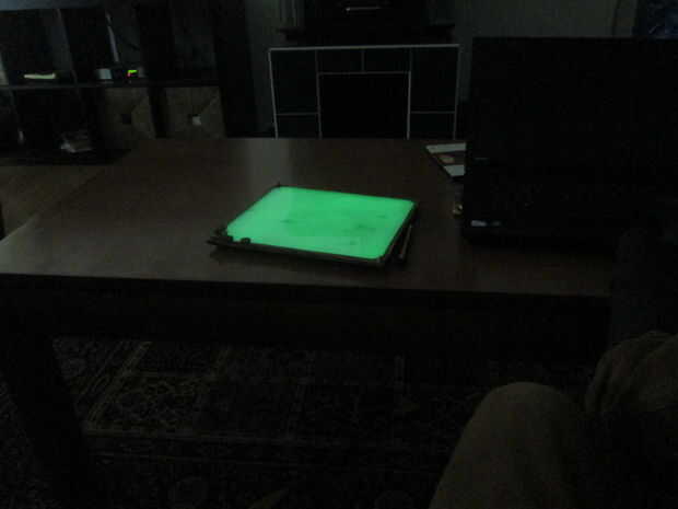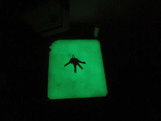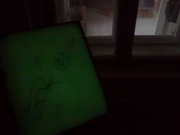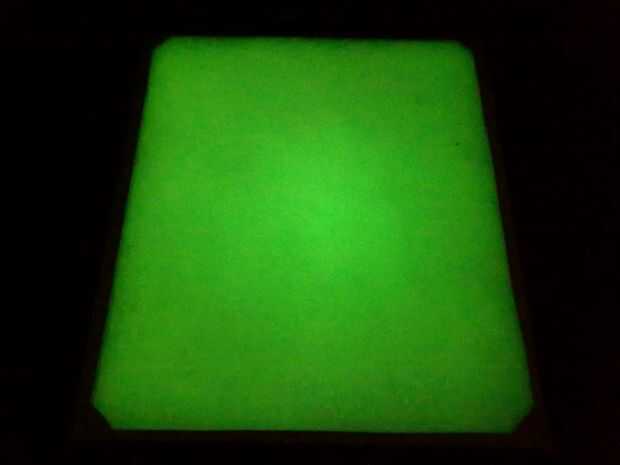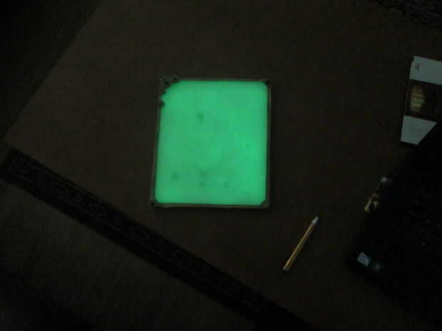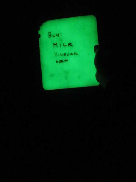 Funciona como un regular pizarra (tablero del seco-borrar) excepto que brilla en la oscuridad!