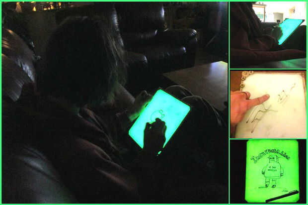 Puede dibujar y borrar, simplemente con un pañuelo... Sentado en su cama por la noche.