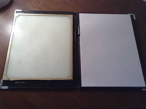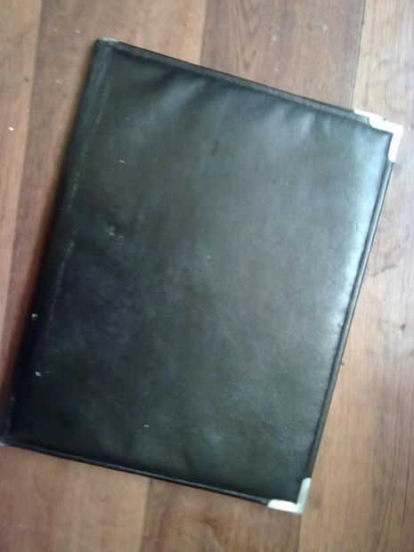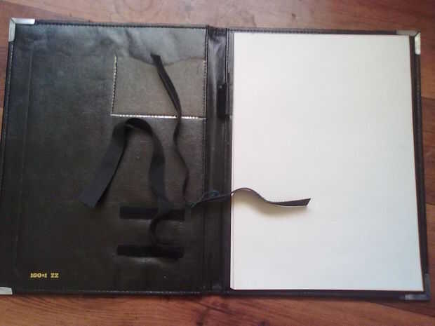 Así. sólo tomé carpeta con mi sketchbook dentro que ya tenía. Es un agradable eco-cuero negro.